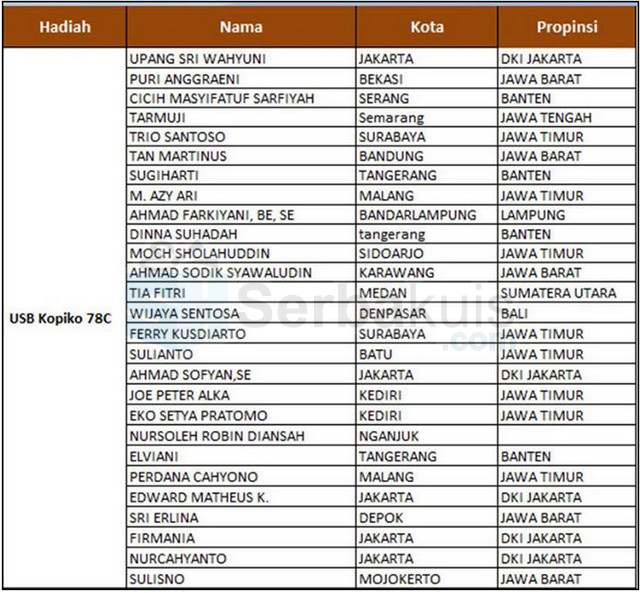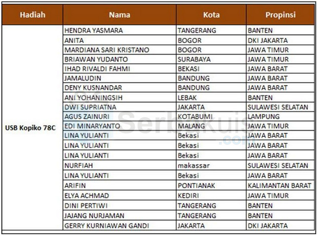 Ini pengumumannya ada di mana ya? koq di website alfamart dan alfamidi tidak ada. Terus pemenang USB kopiko kenapa ada yg 4 x nama yg sama??
