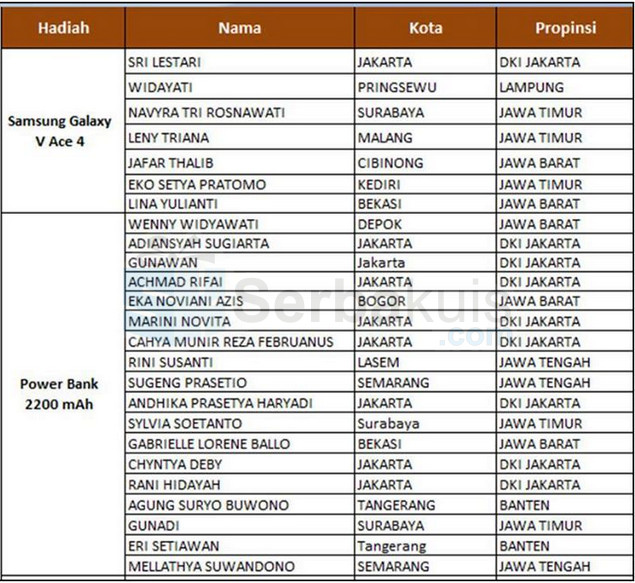 Selamat ya untuk para pemenangnya, hadiahnya keren keren dan semoga sobat serbakuis ada yang dapet ya. Jangan lupa berbagi dengan orang-orang terdekat di keluarga anda. Buat yang berlum beruntung, tenang saja masih banyak informasi promo undian berhadiah dari Alfamidi dan Alfamart gratis untuk anda.