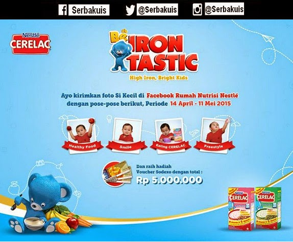 Nah, kali ini Rumah Nutrisi Nestle sedang mengadakan kontes foto CERELAC Be Irontastic! Ada hadiah voucher belanja jutaan rupiah yang bisa ibu dapatkan loh. Cara ikutan kontesnya tinggal ambil foto si kecil dengan beberapa pose yang telah ditentukan. Untuk info lengkapnya silahkan simak yang berikut ini yaa…