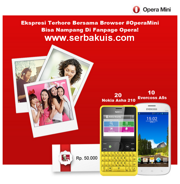 Opera Mini Bagikan 20 Nokia Asha 210 & 10 Evercoss A5s – Buat anda yang punya smartphone android, hampir dipastikan jarang sekali menggunakan browser internet bawaan, dan beralih menggunakan browser aplikasi lainnya yang banyak tersedia di Play store. Namun, banyak yang pilih-pilih tentunya, pilihan yang minku kenal itu ada Google chrome, opera mini, mozilla, sama Baidu. Nah, kalian tahu kan Opera Mini? kamu pake gak? sudah tahu belum, kalau Opera Mini sudah memiliki lebih dari 30 Juta pengguna haya di INDONESIA saja!, keren banget dah, soalnya opera mini memang simpel dan cepat sih menurut minku, karena minku juga menggunakannya sejak 6 tahun lalu, waktu masih pake ponsel java.