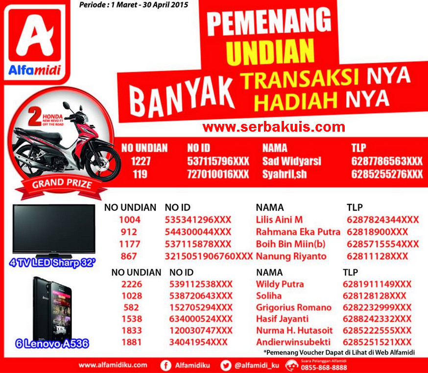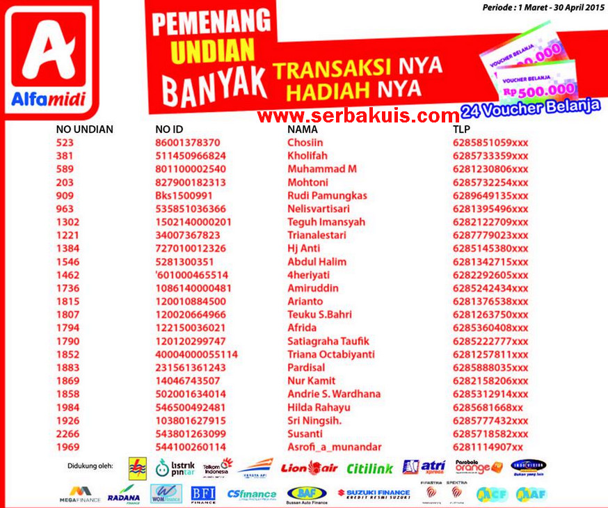 Berikut ini adalah daftar para pemenang undian alfamidi tersebut: